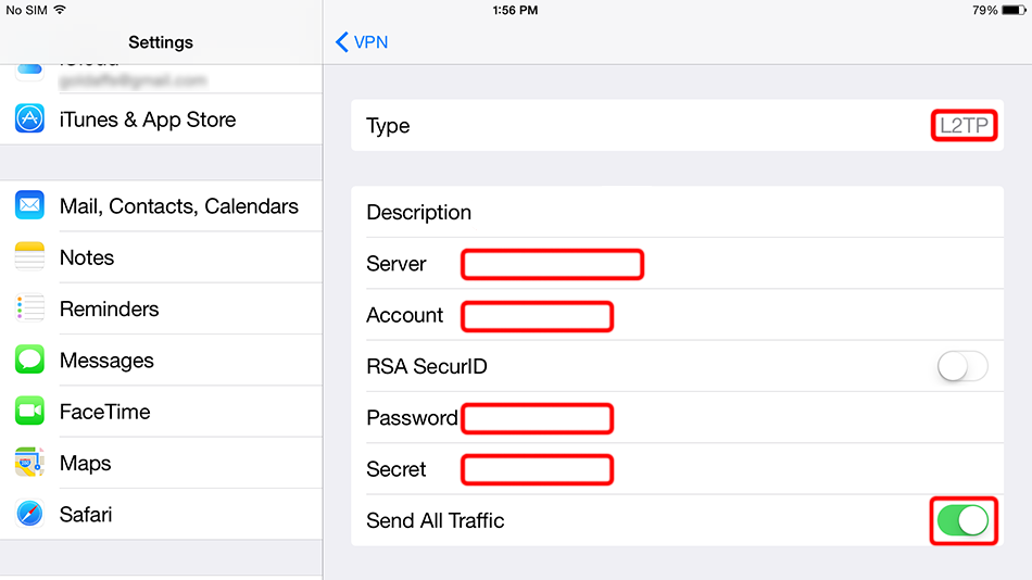 Füllen Sie das Formular mit den unten gezeigten Werten aus. Aktivieren Sie den Schalter "Gesamter Datenverkehr senden".