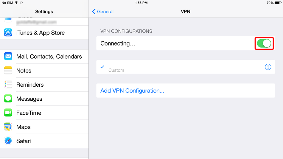 Tippen Sie auf die Schaltfläche Verbinden, um die VPN-Verbindung zu starten.