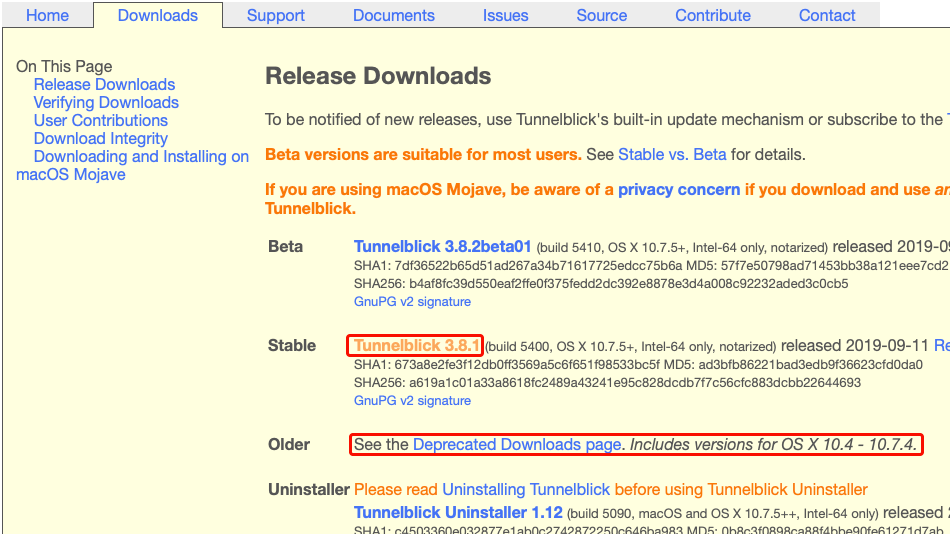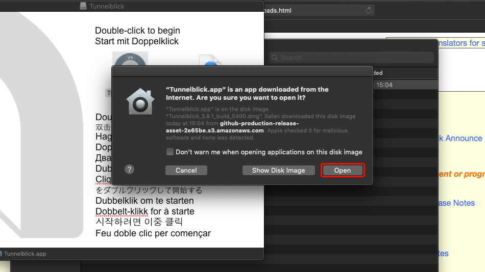 oder von Github.com Website aus: Tunnelblick 3.5.25
