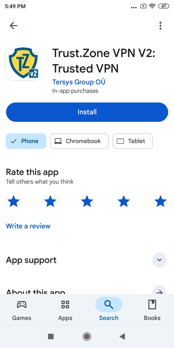 Descargue e instale el cliente VPN oficial de Trust.Zone desde Google Play: Google Play: Trust.Zone VPN - La VPN anónima #1