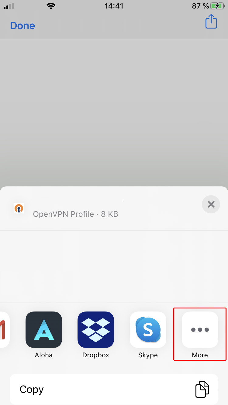 Busque el elemento Copiar a OpenVPN en la lista y tóquelo.