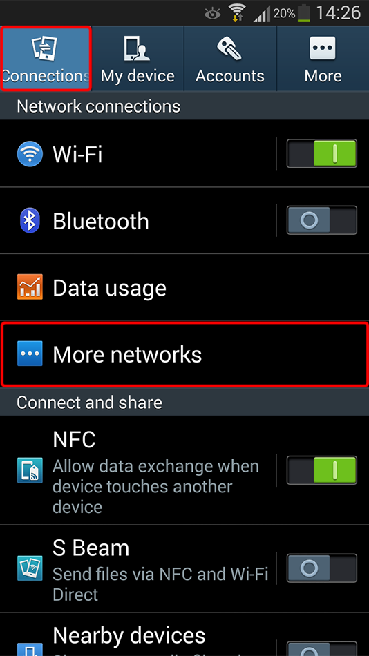 Assurez-vous que vous êtes dans l’onglet « Connexions » et appuyez sur l’élément de menu « Plus de réseaux ».
