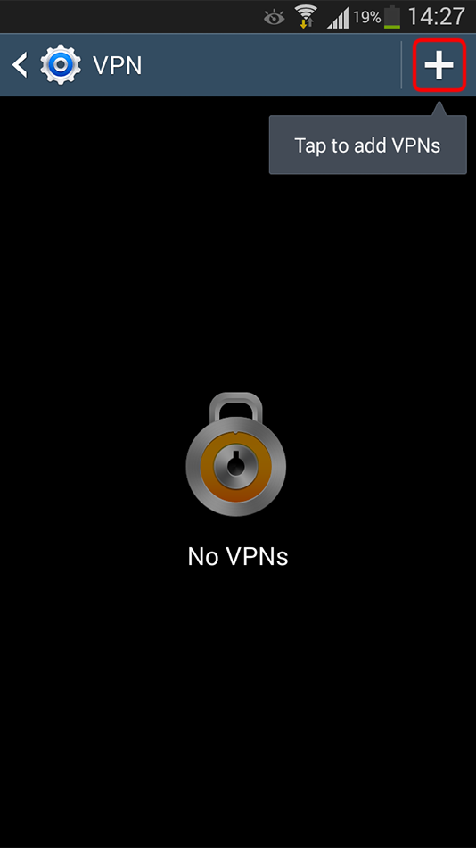 Sur l’écran « VPN », appuyez sur le signe « + » en haut à droite de l’écran.