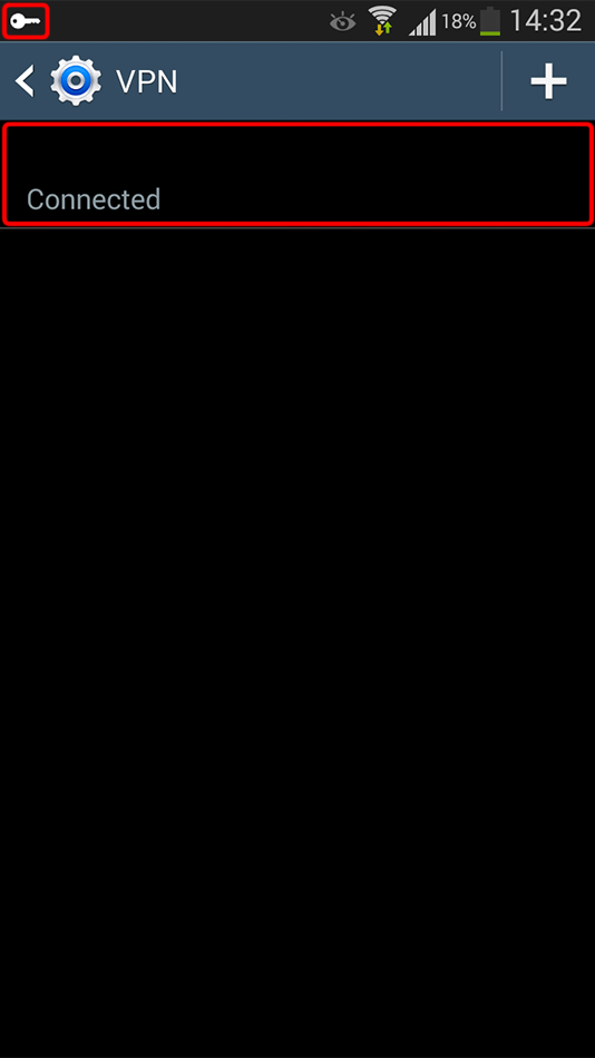 Si la connexion a été établie avec succès, vous verrez « Connecté » près du nom de votre connexion VPN ainsi que le signe « clé » dans la zone de notification.