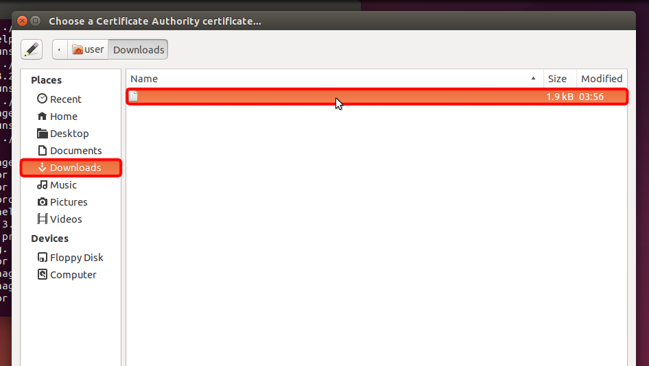Naviguez jusqu’à « Téléchargements » et double-cliquez sur le nom du certificat pour le choisir.