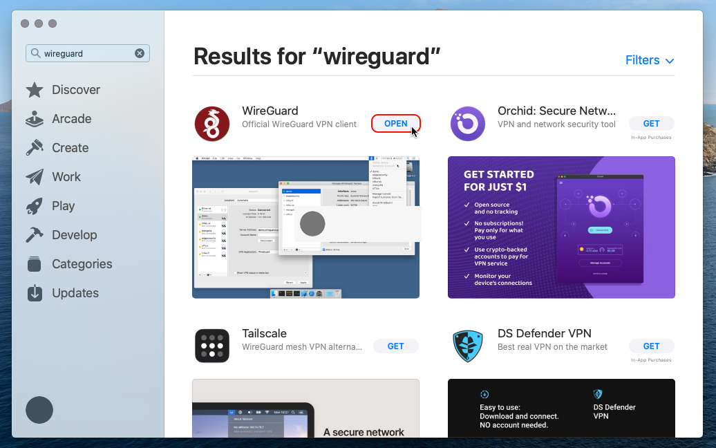Installez le client officiel WireGuard depuis l’App Store d’Apple : https://apps.apple.com/app/wireguard/id1451685025