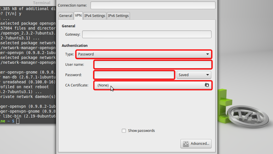 sudo apt-get install openvpn network-manager-openvpn-gnome