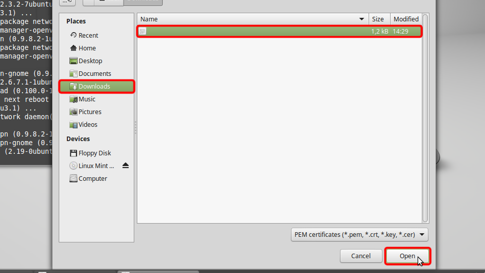 Navigate to "Downloads" and double click on certificate name to choose it.