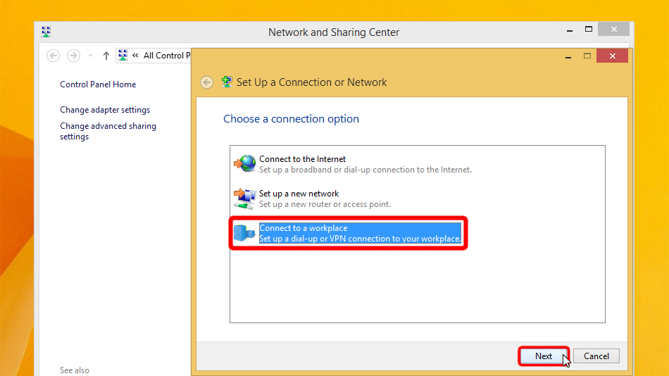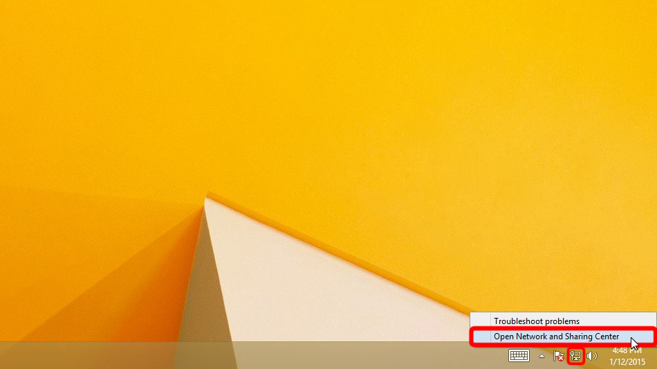 Right click on the network icon in the system tray and then click "Open Network and Sharing Center".