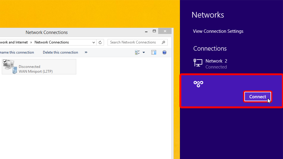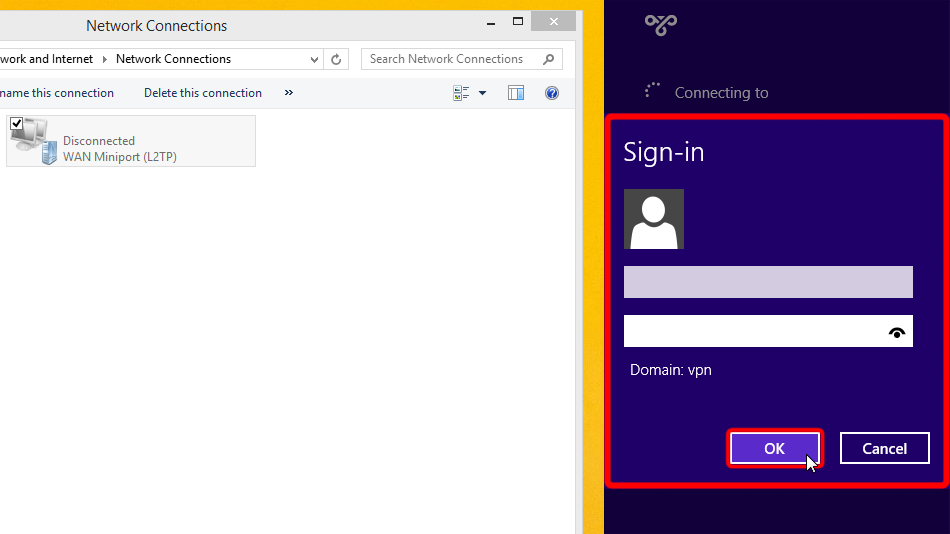 Click on the network icon in the taskbar, select the VPN connection and click on "Connect".