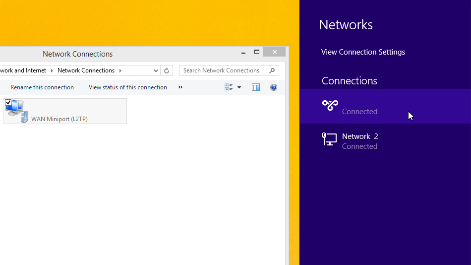 If connection has been successfully established, it displays "Connected". You can manage your VPN connection in the network settings.