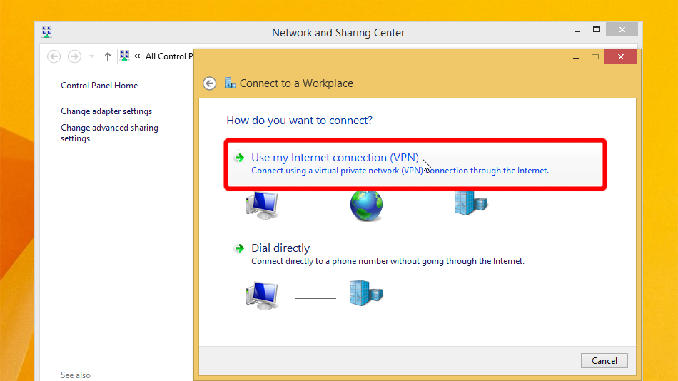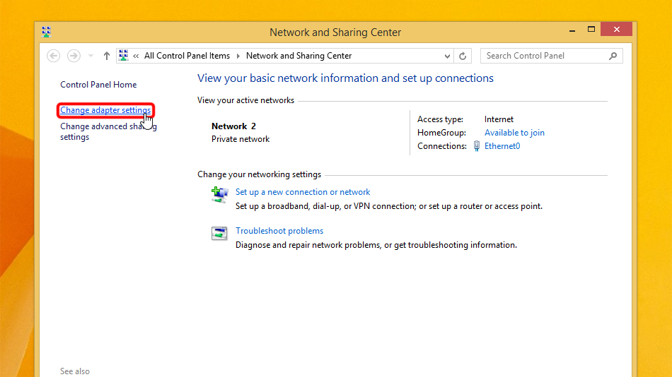 Open the Network and Sharing Center and click on "Change adapter settings".