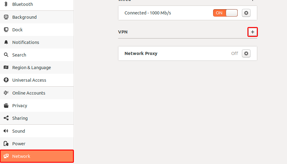 Find VPN section and click "+" button to start creating a new VPN configuration.