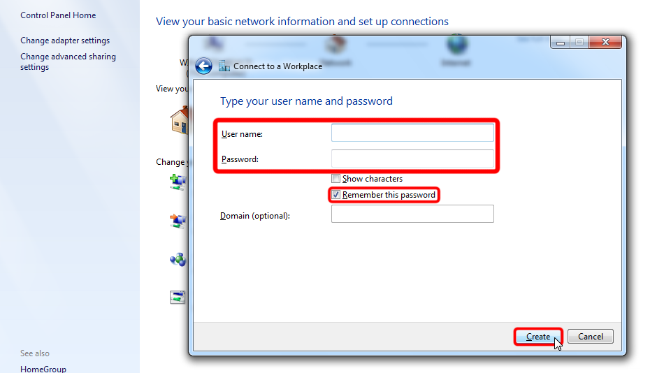 Enter your Trust.Zone's VPN login credentials, check "Remember this password" and then click "Create".