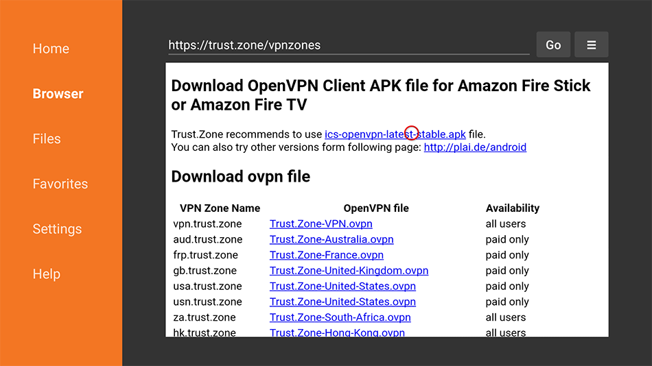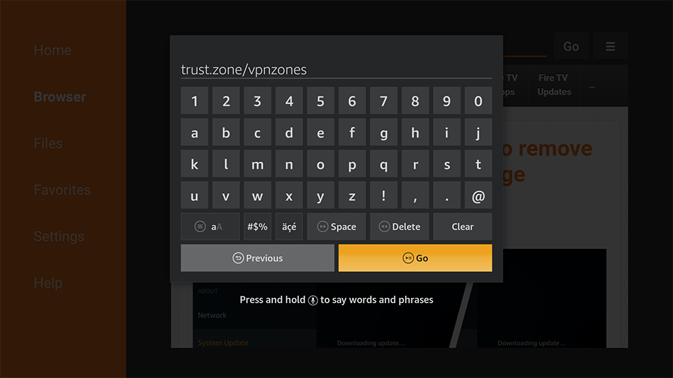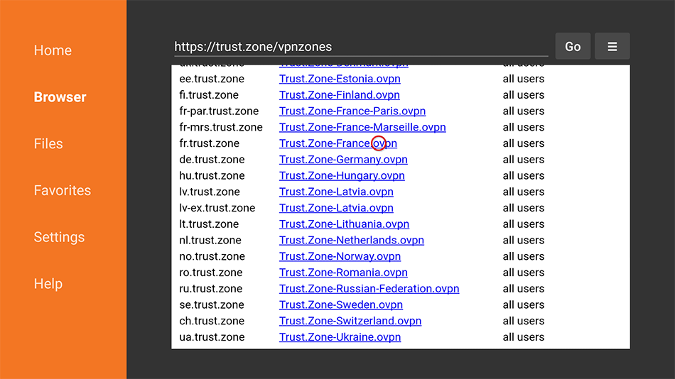 Sol bölmeden Tarayıcı'yı değiştirin, aşağıdaki adresi yazın: https://trustvpn.zone/tr/vpnzones ve ardından Git'e basın
