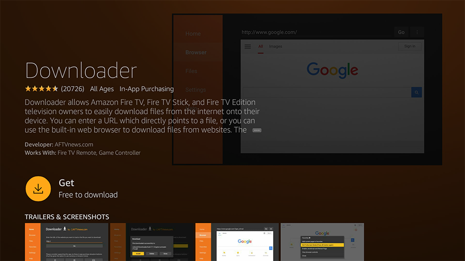 Downloader uygulamasını yüklemek için Al'a tıklayın