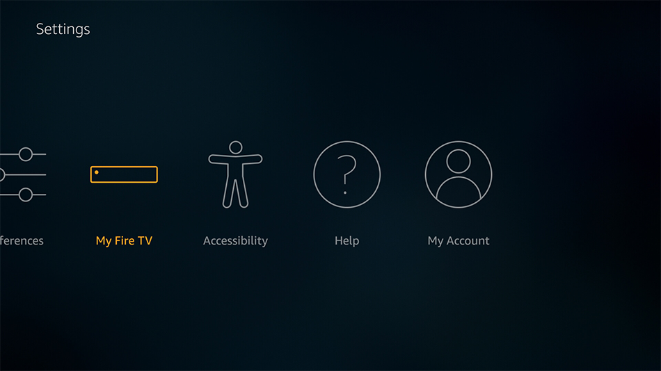 Firestick'inizi başlatın, Ayarlar -> Fire TV'yi açın