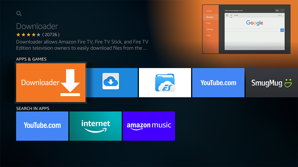 Sola basarak büyüteç simgesine geçin ve Downloader uygulamasını arayın